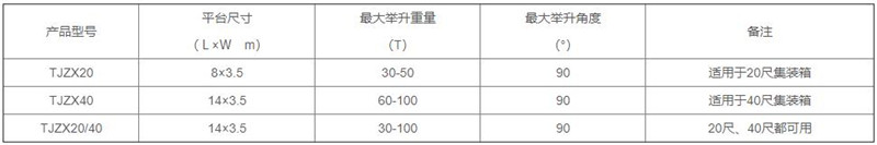 多功能集裝箱卸車機為我司研制的一種裝、卸兩用集裝箱卸車機,工作時,該設(shè)備不需要借助其他裝置就可以自動將集裝箱與拖車車廂分離,自動打開或者關(guān)閉箱門、還設(shè)置自動計量功能,具有自動化程度高、功能齊全、操作方便、翻轉(zhuǎn)角度大(最大90°)、卸料干凈、裝卸兩用等特點,型號分為20尺和40尺集裝箱兩種,廣泛用戶糧食、化工、食品、港口碼頭等行業(yè),特別適用于集裝箱裝箱用。